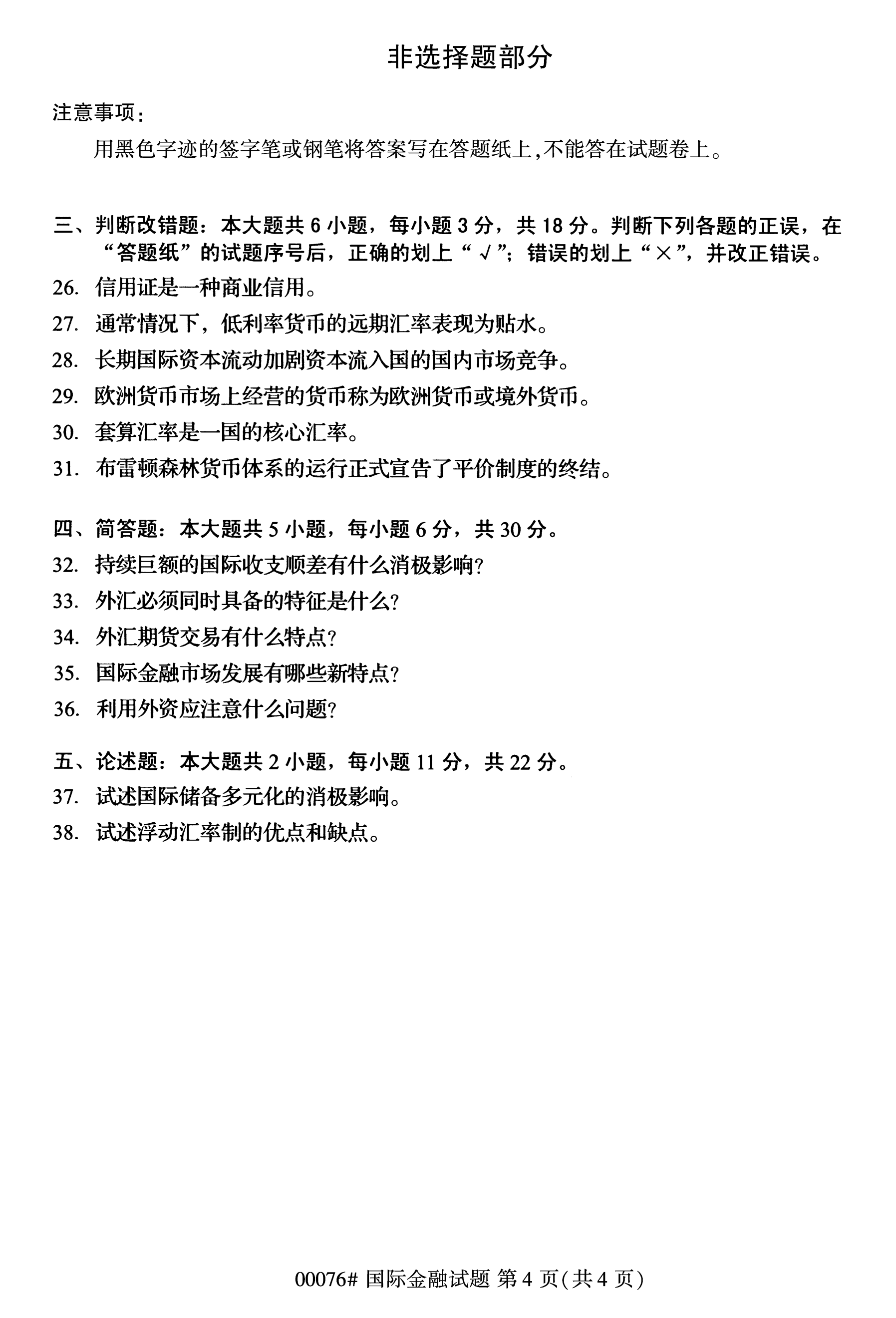 福建自考全國(guó)卷國(guó)際金融(00076)試題