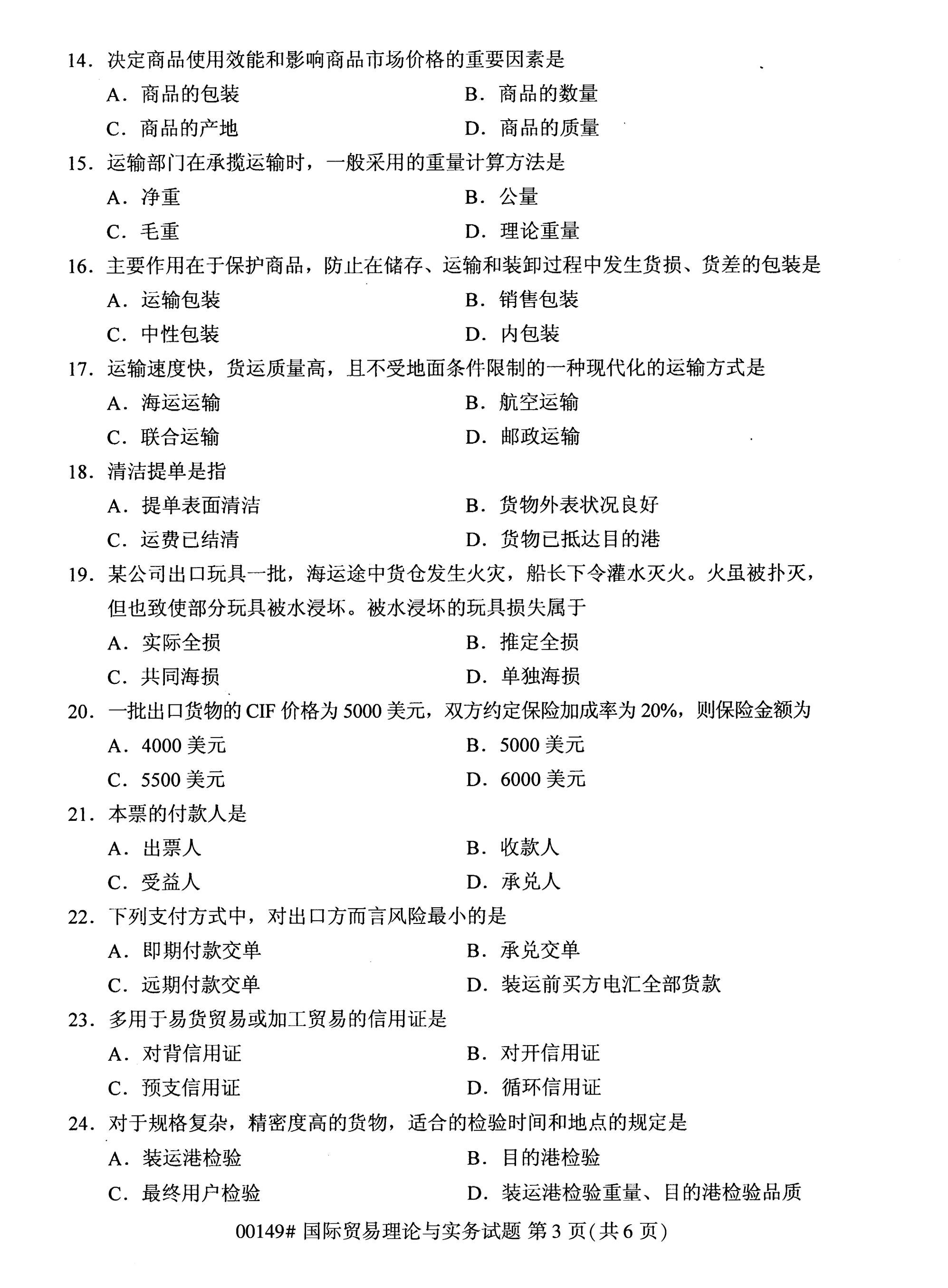 所在位置:福建自考網(wǎng) > 試題題庫 > 自考試題 > 福建自考全國卷國際貿(mào)易理論與實務(wù)(00149)試題