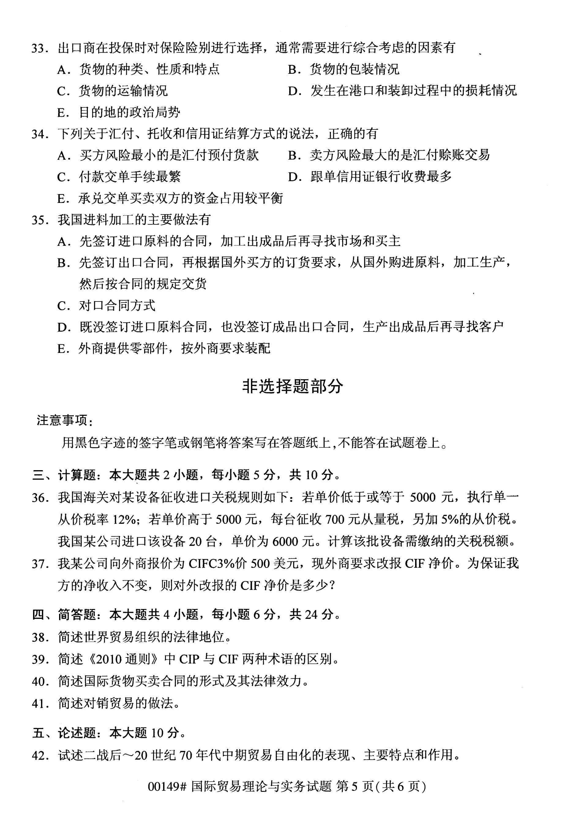 福建自考全國卷國際貿(mào)易理論與實務(wù)(00149)試題