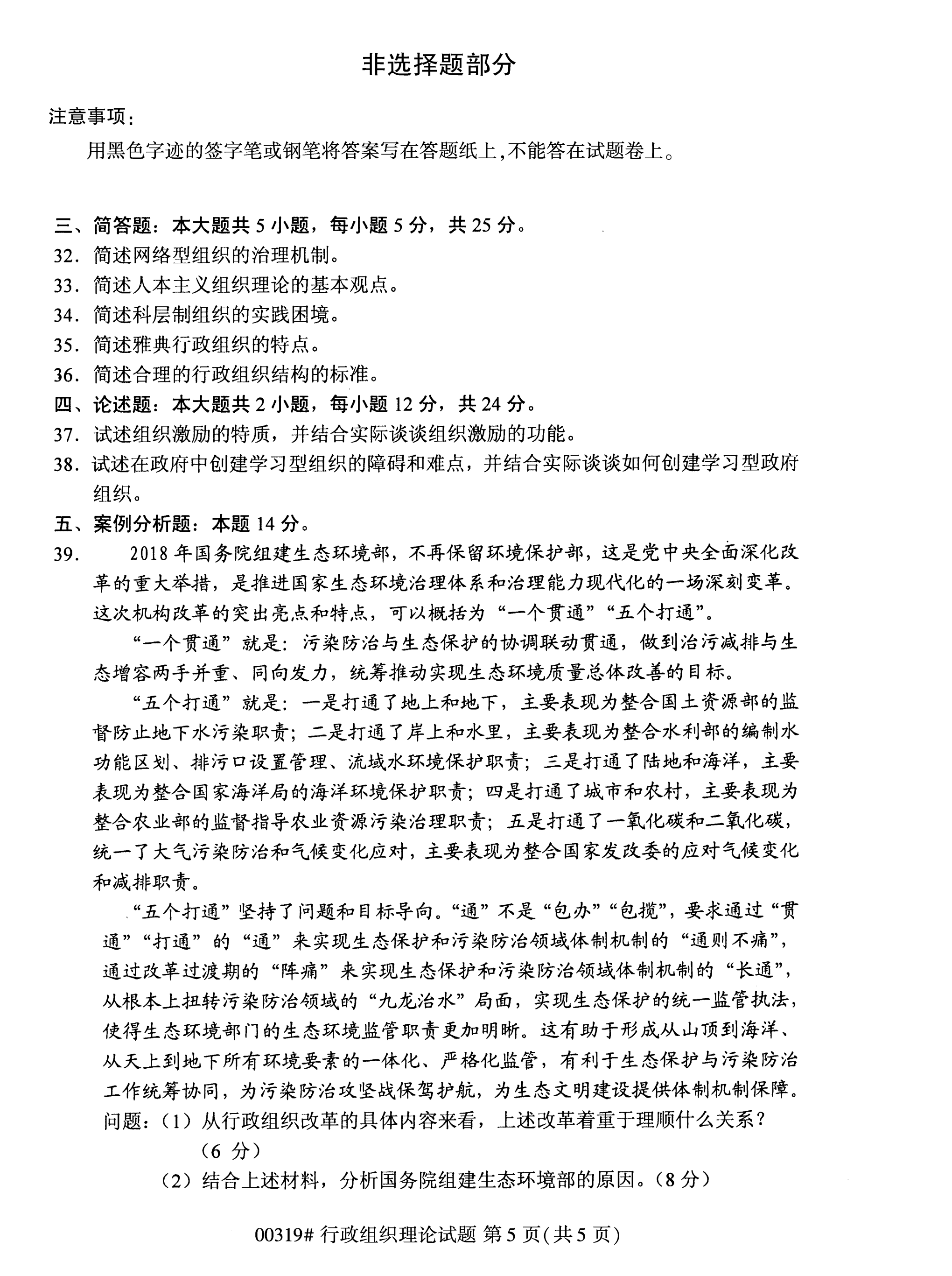 福建自考全國(guó)卷行政組織理論(00319)試題